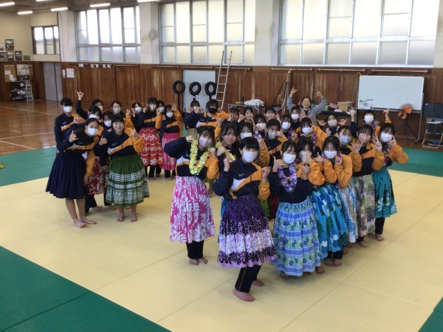 フラダンスレッスン ー3年生 体育女子ー 公開日 2026/02/03 更新日 2026/02/03 3年生 3年生女子はフラトレ(フラダンスを取り入れたトレーニング)インストラクター 磯谷綾さんを招いて、フラダンスを体験しました。柔剣道場がハワイに?!笑顔がたくさん、幸せを感じられる時間になりました。アロハ! +5 お知らせ 3年生