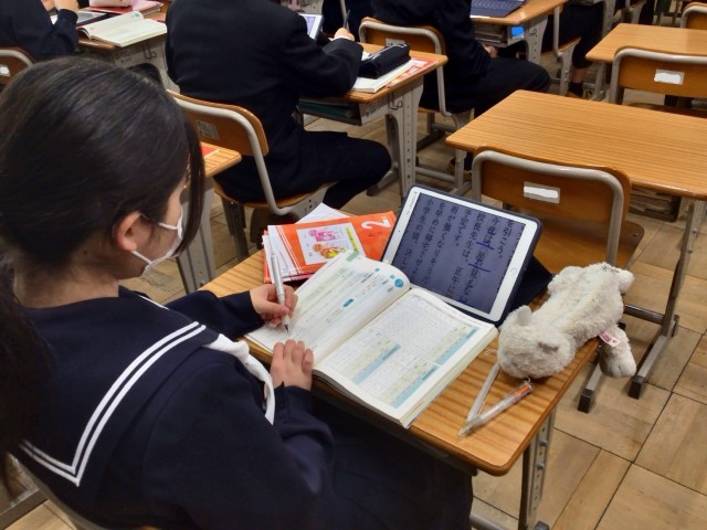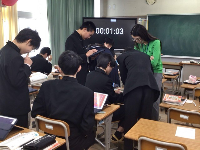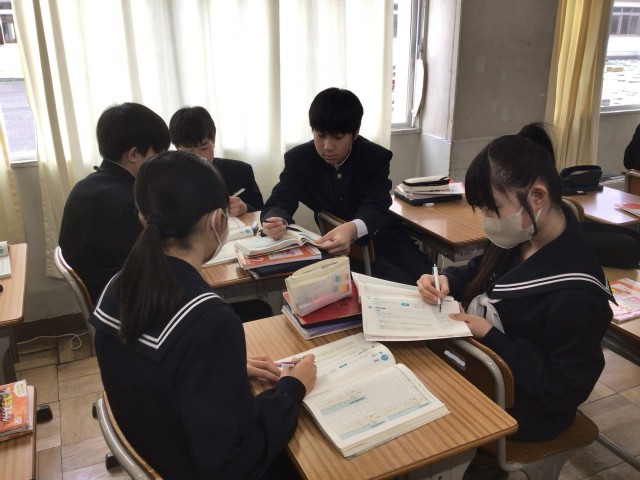 級友と話し合いながら、文法の問題に取り組みました