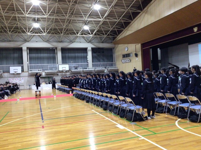 卒業式後、3年生は教室で最後の時間を過ごした後、再び式場に戻りました。