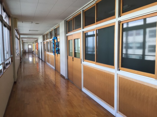 最後の写真は、皆さんが帰った後の教室、廊下の様子です。