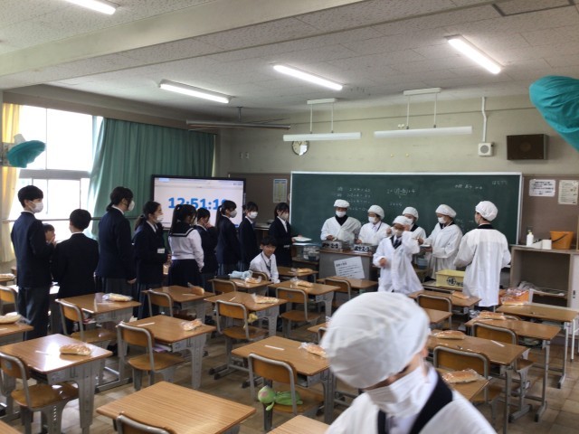 配膳する当番、配膳されたものを届ける生徒、きちんと着席して待っている生徒…どの学級も役割を果たしている様子が見られました。