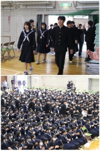 校舎内の全員で3年生の卒業を祝福しました。