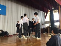 各クラス代表生徒が前に出て準備運動をしたり、体育の先生から記録を伸ばすストレッチやコツを伝授してもらったりしました。