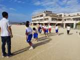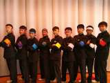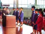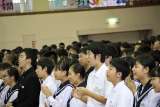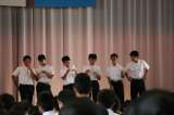 全校で歌う白陵祭のテーマソングの練習を全校集会で行いました。ステージ上の団長も大...