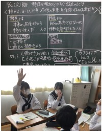 同じ時間に1年生3学級が数学を学習中それぞれのよさを発見ある学級は、生徒の座席を...