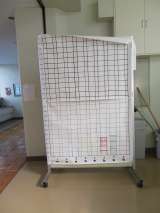北館一階, 階段前に3年生の掲示板が置かれています。 なぞの表が書かれていまし...
