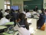 11月18日5時間目に 理科室で1年4組の理科の研究授業が行われました。 武豊...