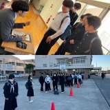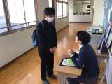 2年生、上級学校訪問。 早い班の帰着が始まりました。 「楽しかったです」と笑顔で...