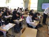 1時間目と5時間目を使って百人一首大会を実施しました。異なるクラスの仲間と真剣勝...