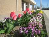 ABC組の生徒が入学式に飾った花を花壇に植えています。 体育館回りが明るくなりま...