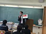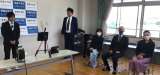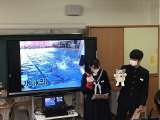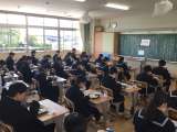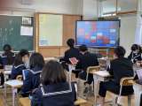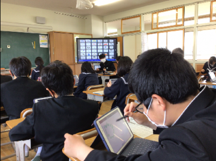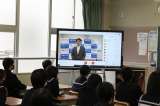 感染症対策のためリモートで行いました。 生徒は教室の電子黒板を使って参加しました...