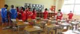 新しい清掃区域での掃除が始まりました。15分間学校をきれいにするために一生懸命動...