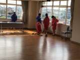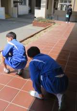花を運んだり, 床を雑巾がけしたり, 下駄箱等を雑巾がけしたりして, 一生懸命に...