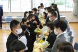 代表生徒がお世話になった先生に花束を贈呈しました。