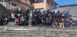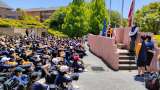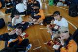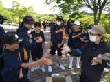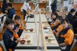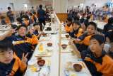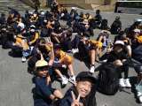 入所式後の様子です。 青空の下の弁当。おいしそうですね。