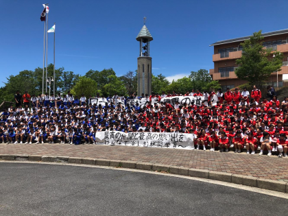最後の火文字の点火です。夜空に明るく学年スローガンが燃え上がりました。
