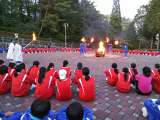一日目の夜はキャンプファイヤーです。火の神からの分火、点火の儀式が厳かに行われた...