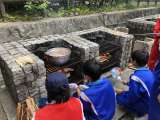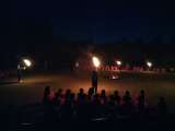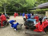 林間学習のキャンプファイヤーで演じる火の舞のリハーサルを行いました。初めて着火し...