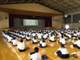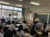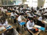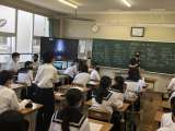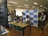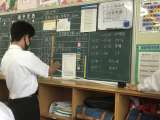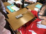 レールに球を転がした実験を行っていました。タブレットと電子黒板を使って実験の様子...