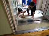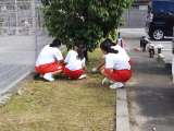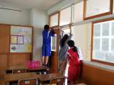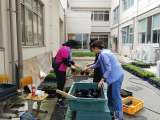 第1回の作業は、苗の植え替え、草刈り、屋外ベンチの塗装、教室入口のカーテンレール...